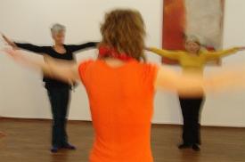 Mit klar strukturierten und überschaubaren Improvisationsaufgaben. Hier werden die Teilnehmer mit Hilfe der neu gewonnenen Erfahrungen darin unterstützt, ihren ganz eigenen Tanz entstehen zu lassen und weiter zu erforschen. Anschließend gibt es einen gemeinsamen Abschluss zur Körperdehnung.